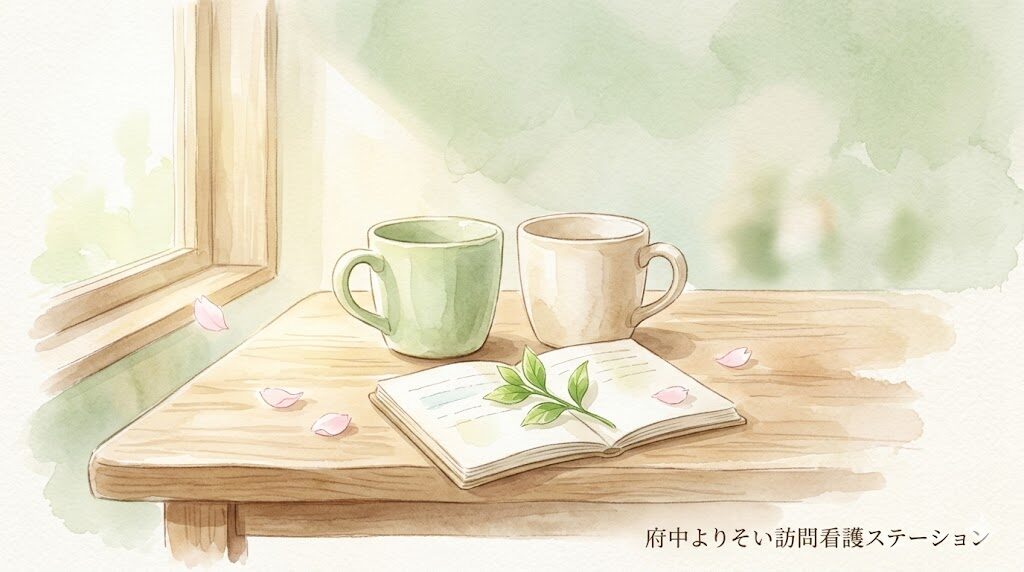 訪問の終わりに、ご家族と少し言葉を交わす時間をとることもあります。「最近、眠れていますか」「おひとりで抱え込んでいませんか」——そんな短いやりとりから、ご家族の疲れが見えてきたら、ケアマネジャーさんや地域の相談窓口へのおつなぎもさせていただきます。