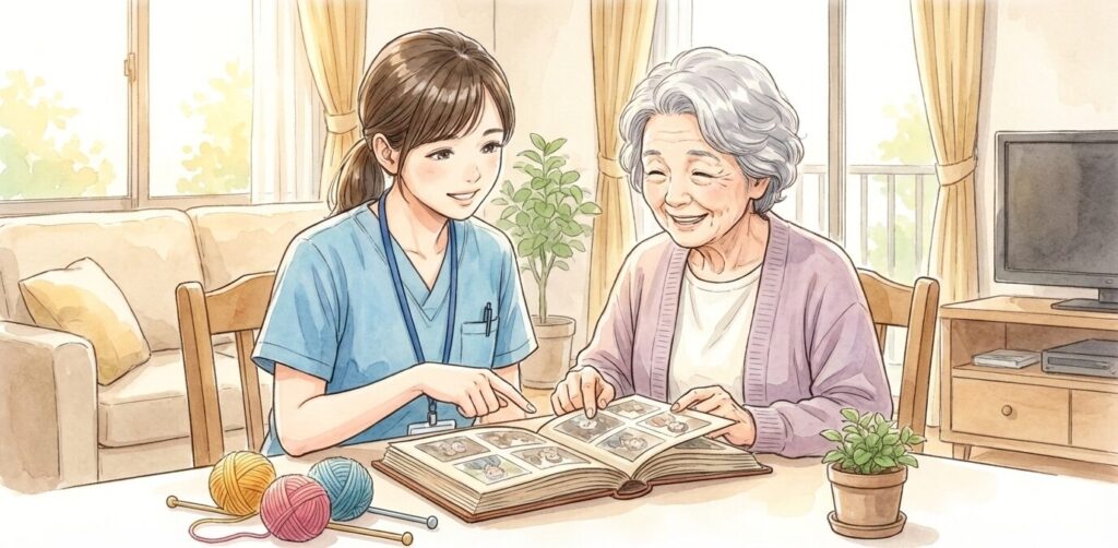 • 非薬物療法の視点: 専門医のアドバイスに基づき、ご本人の強みを活かした会話や活動(回想法や音楽、趣味の再開など)をケアに取り入れます。