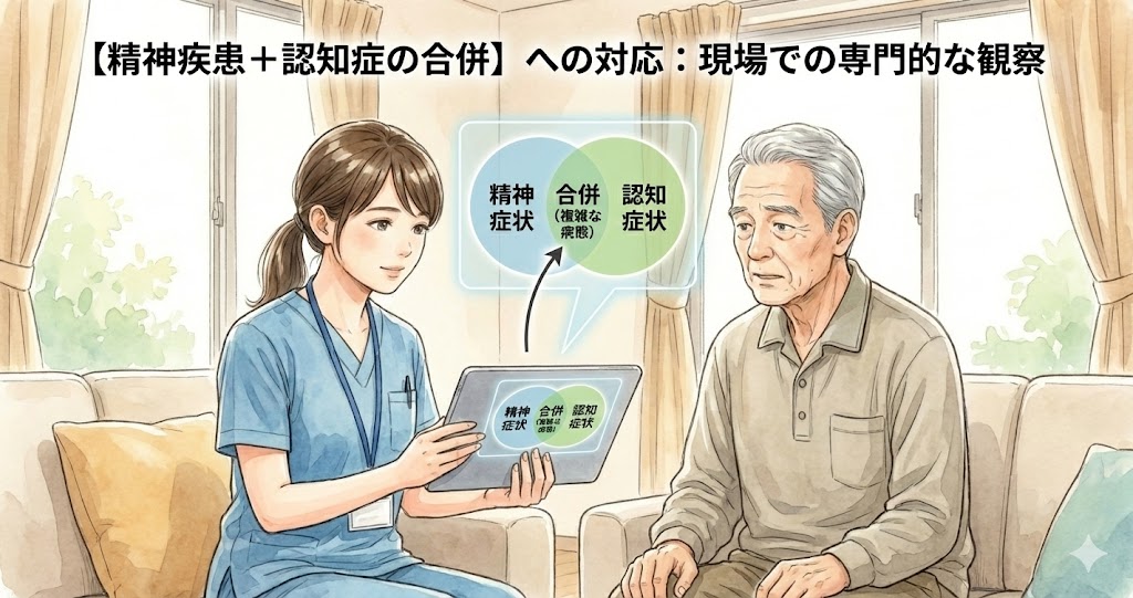 • 「長年精神疾患(統合失調症やうつ病など)を患っている方が高齢になり、認知症も重なって対応の難易度が跳ね上がっている」