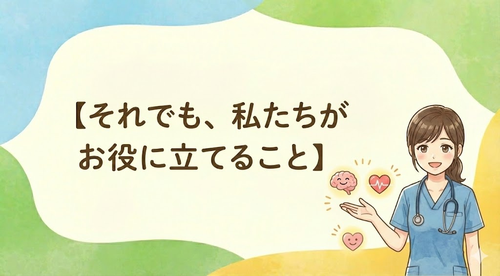 専門医との薬剤調整: 症状が強く、生活に支障が出ている場合は、精神科医師と密に相談し、適切な薬剤調整を検討します。お薬の効果や副作用(ふらつき、眠気など)を看護師が現場で細かく観察し、迅速に医師へフィードバックすることで、ご本人にとって最適な処方のバランスをチームで探ります。