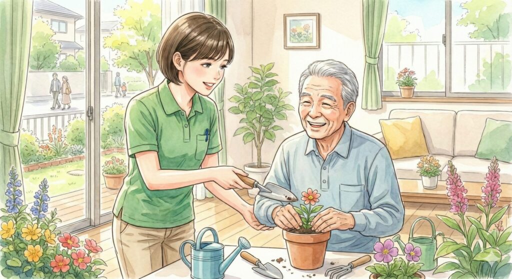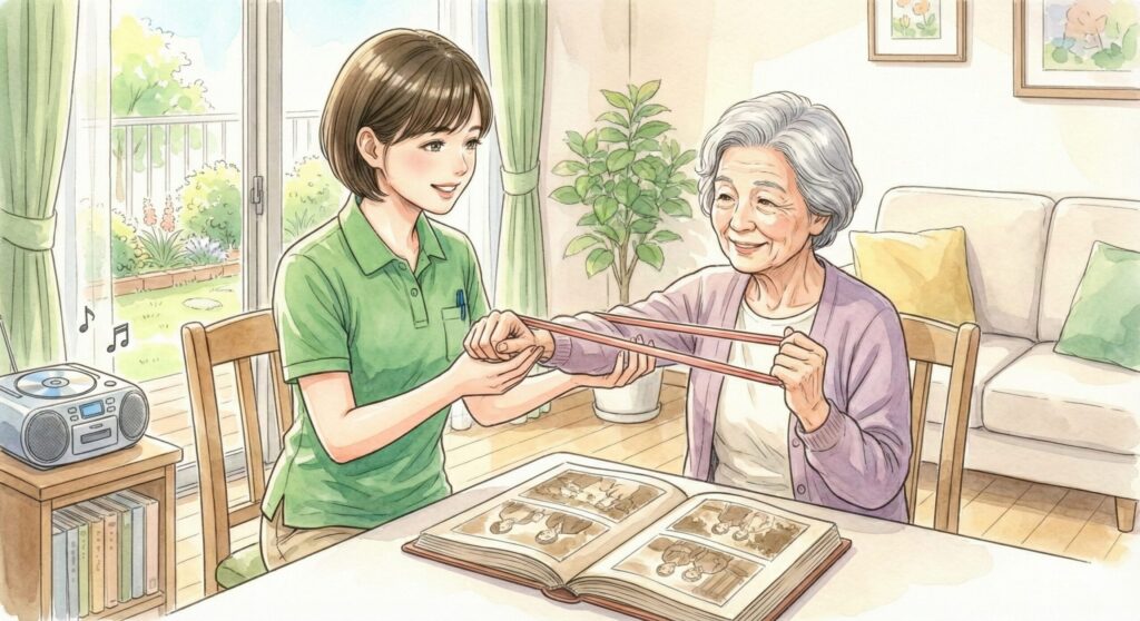 • 非薬物療法の実践: 専門医のアドバイスに基づき、回想法や音楽、趣味活動など、ご本人の脳の健康を守るための活動を生活の中に組み込みます。