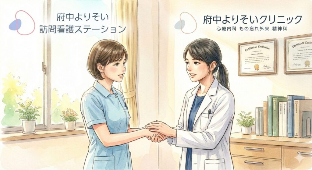 • 他院の先生とも連携: 現在の主治医の先生の診療を継続しながら、私たちは「精神科・認知症訪問看護」の専門部隊として介入します。